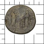 ADVENT[VI AVG I]VDAEAE // S C. Hadrian mit Buchrolle und erhobener Rechten nach rechts stehend und Iudaea mit Patera nach links stehend, die an Altar opfert, zu Füßen links zwei Jungen mit Palmen, rechts ein weiterer Junge mit Palmzweig, hinter dem Altar Opfertier. |