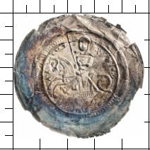CONES / FRIDE-RI-CVS. Reiter mit Adlerschild, quer hängendem Schwert und Fahne nach links. |