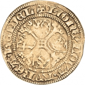 MONE NOVA AVREA HEIDEL. Vier Wappenschilde über Kreuz gestellt. |
