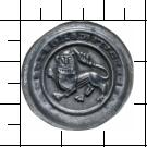 + IEPNC LEOEL [DVX HINPNC]S O LEO A [teilweise spiegelverkehrt]. Löwe nach links schreitend, Kopf dem Betrachter zugewandt. Der Schwanz endet in einer halben Palmette.