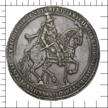 FRIDERICUS ULRICUS DEI GRATIA DUX BRUNSVICENSIS ET LUNEBURGENSIS. Herzog Friedrich Ulrich zu Pferde nach rechts.