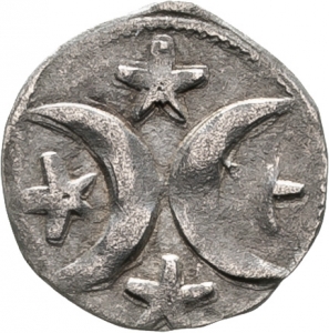 Vorderseite: Zwei Halbmonde und vier Sterne.