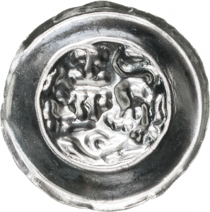 Vorderseite: Löwe, Kopf dem Betrachter zugewandt, nach links über eine halbe Lilie springend.