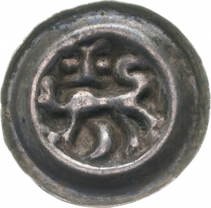 Vorderseite: Löwe, Kopf dem Betrachter zugewandt, nach links, darunter senkrechte Mondsichel.