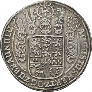 Vorderseite: AUGUSTUS. HERTZOG. ZU. BRAUN. U LU. Fünffach behelmter elffeldiger Wappenschild.