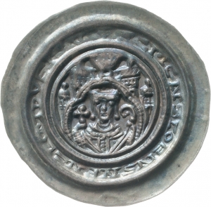 Obverse: SCIICNSIOENSNENCIMIDVSISNC. Brustbild des Bischofs mit Krummstab in der Linken und Kreuzstab in der Rechten unter dreifachem Perlenbogen, der mit Türmen und Gebäuden besetzt ist.