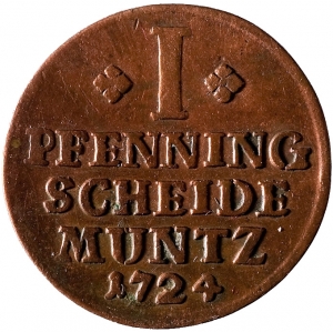 Vorderseite: I / PFENNING / SCHEIDE / MUNTZ / 1724