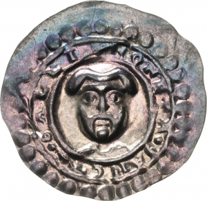 Vorderseite: MONETA SANCTI GALLI. Kopf des Hlg. Gallus von vorn. Perlrand.