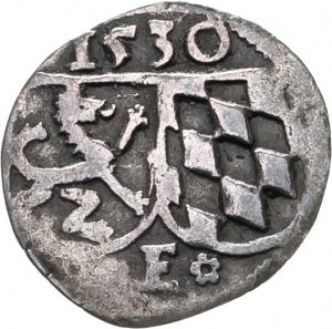 Vorderseite: Wappen von Passau und Bayern nebeneinander, darunter E zwischen Rosetten, darüber Jahreszahl 1530.