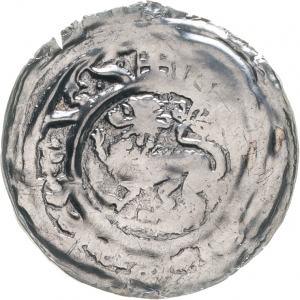 Vorderseite: + [HI]N[RI]CVS. Löwe nach links schreitend, die Schwanzquaste endet in einem nach oben gerichteten Kleeblatt.