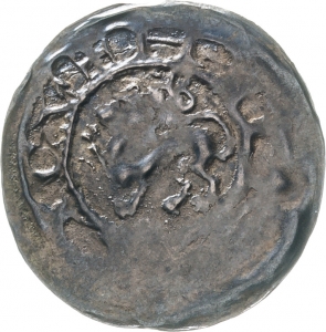 Vorderseite: + HEI[NRI]CV. Löwe nach links schreitend, die Schwanzquaste als dreiblättriges Kleeblatt.