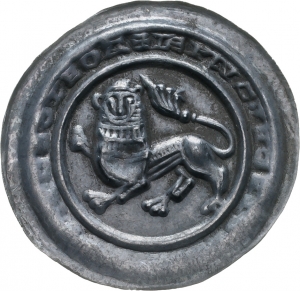 Vorderseite: + IEPNC LEOEL [DVX HINPNC]S O LEO A [teilweise spiegelverkehrt]. Löwe nach links schreitend, Kopf dem Betrachter zugewandt. Der Schwanz endet in einer halben Palmette.