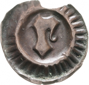 Vorderseite: Gotischer Buchstabe r. Strahlenrand.